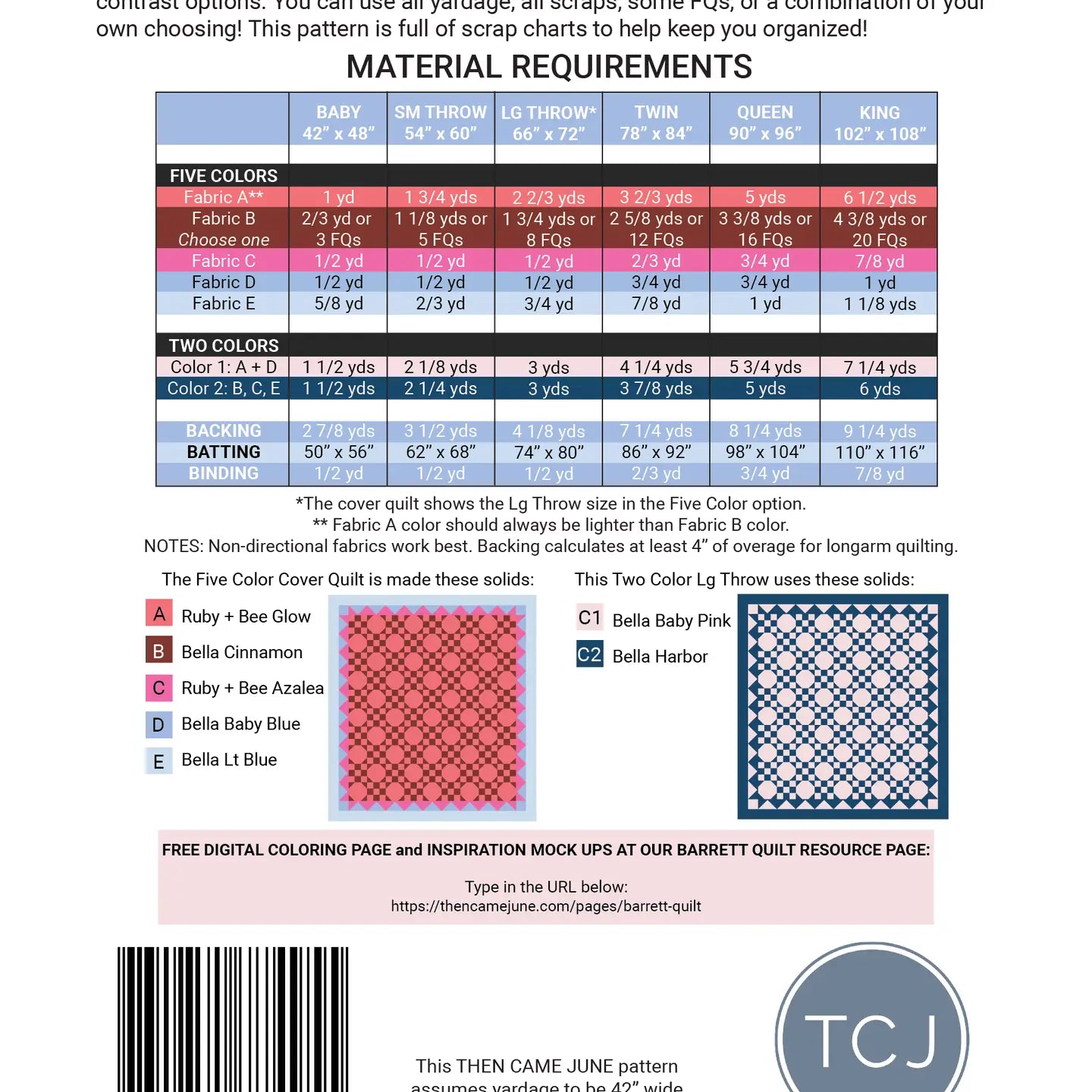 Pattern is for one person use only. Do not copy, redistribute or sell. You may sell quilts made using this pattern on a small independent scale. Please credit the quilt pattern to Then Came June.